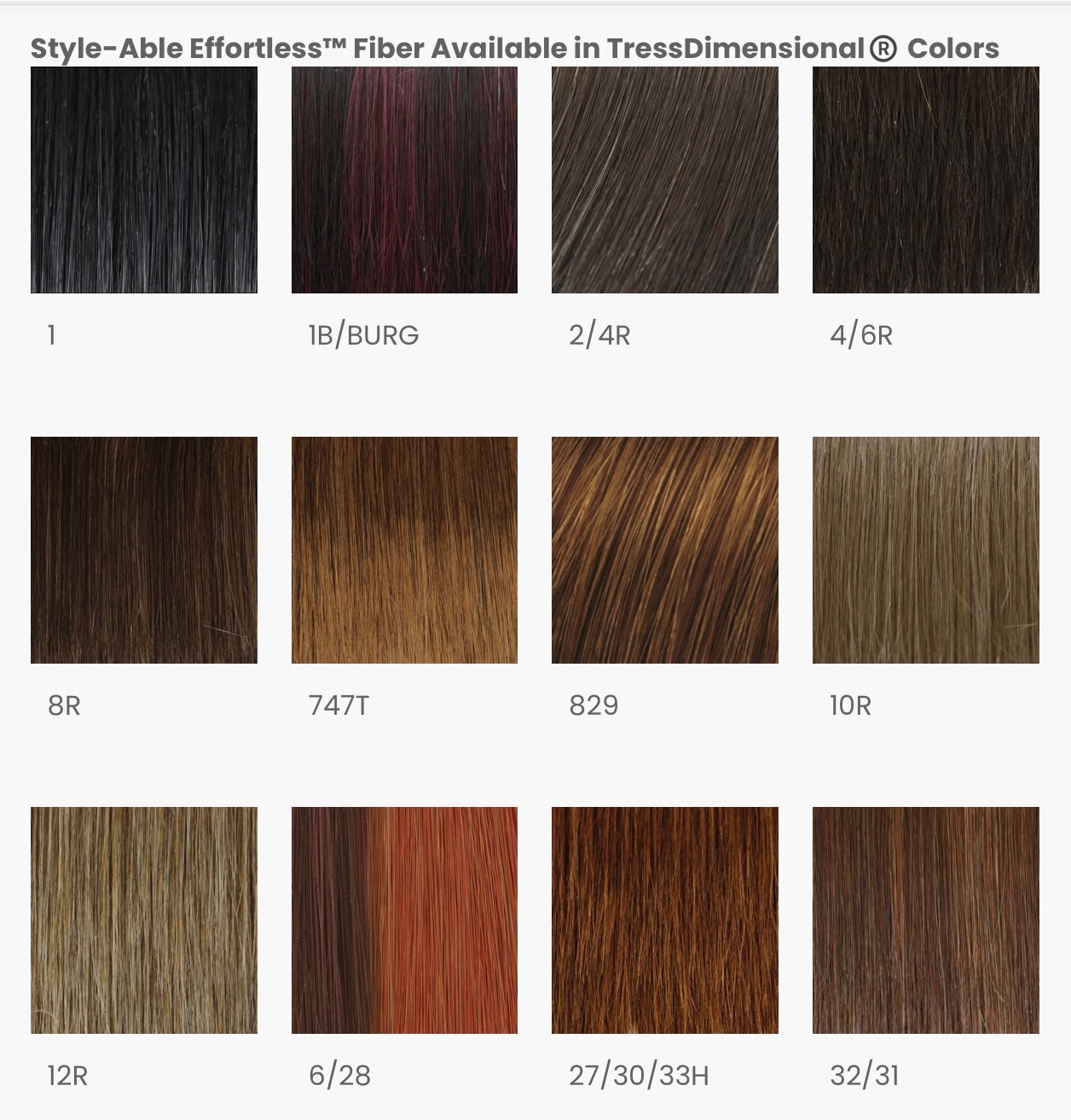 What is it? Short-cropped hair with a smooth wave that frames the face, precision-cut bangs, and lots of volume on top. Made with TressAllure’s exclusive Style-Able Effortless™ fiber.