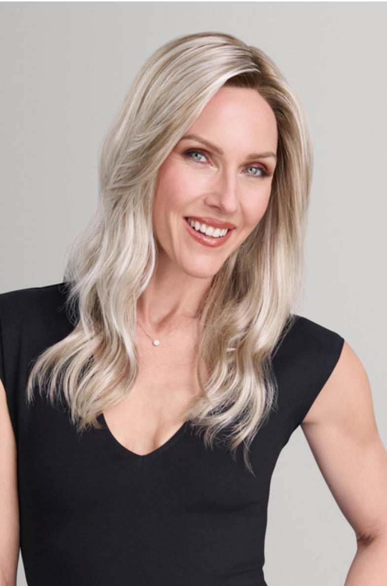 Embrace effortless charm with Olivia’s perfect long, beachy waves. The relaxed, flowing texture delivers a beach-inspired beauty. With light density and an extended SmartLace™ lace front that extends ear tab to ear tab, Olivia delivers a beautifully natural hairline. A monofilament top and hand-tied cap ensure natural movement, realism at the scalp, and lightweight comfort. Wear Olivia loose, or pull back into a ponytail or bun—Olivia makes every day glamour feel totally effortless.